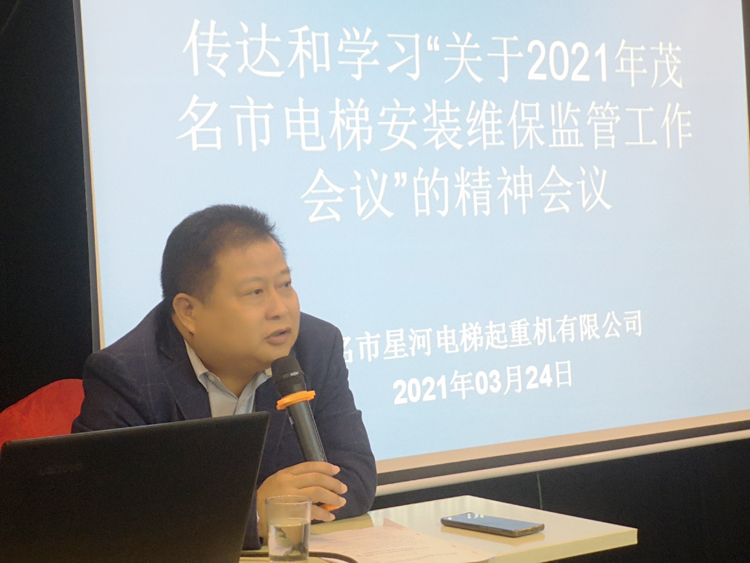 傳達和學習“關于2021年茂名市電梯安裝維保監(jiān)管工作會議”的精神會議