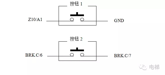 首先按下按鈕1,10T接觸器吸合;然后按下按鈕2,觀察電梯是否有滑動,如果有滑動則需要調(diào)整轎廂負(fù)載直至平衡為止,確認(rèn)電機處于自由旋轉(zhuǎn)狀態(tài)。